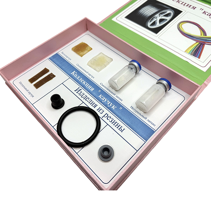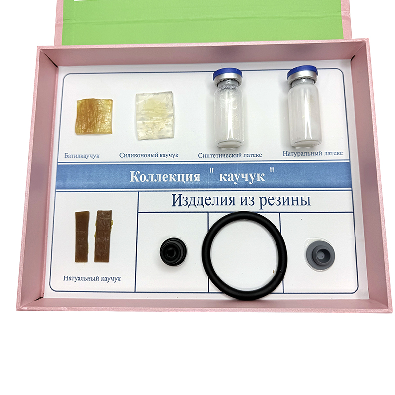 Состоит из 8 видов резиновых материалов и образцов резиновых продуктов, включая силиконовый резин, натуральный латекс, натуральный каучук, резиновые кольца и т. Д.