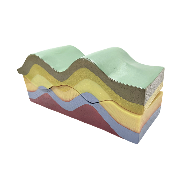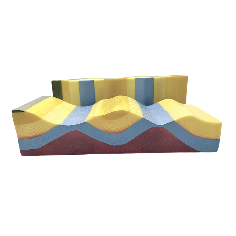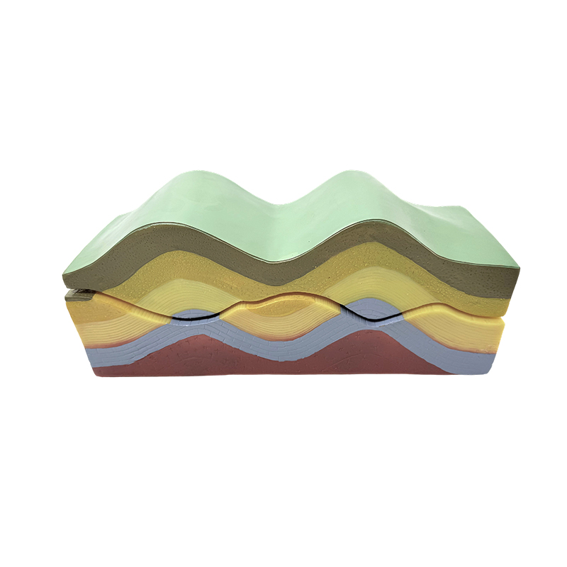 Модель состоит из двух частей, верхняя сторона может быть перемещена, и после удаления она демонстрирует сильную эрозию из -за внешних сил, так что антиклиналь становится долиной и становится горой.