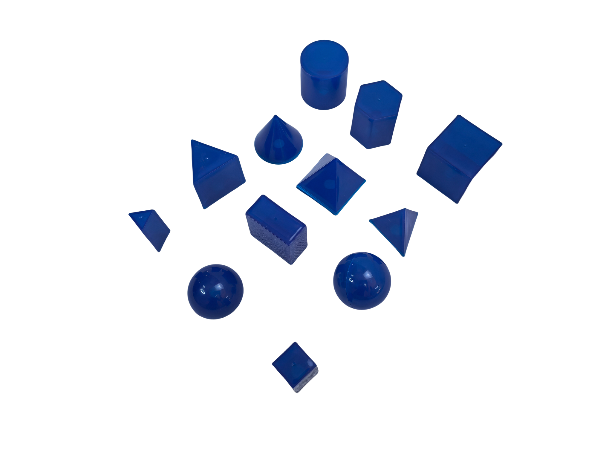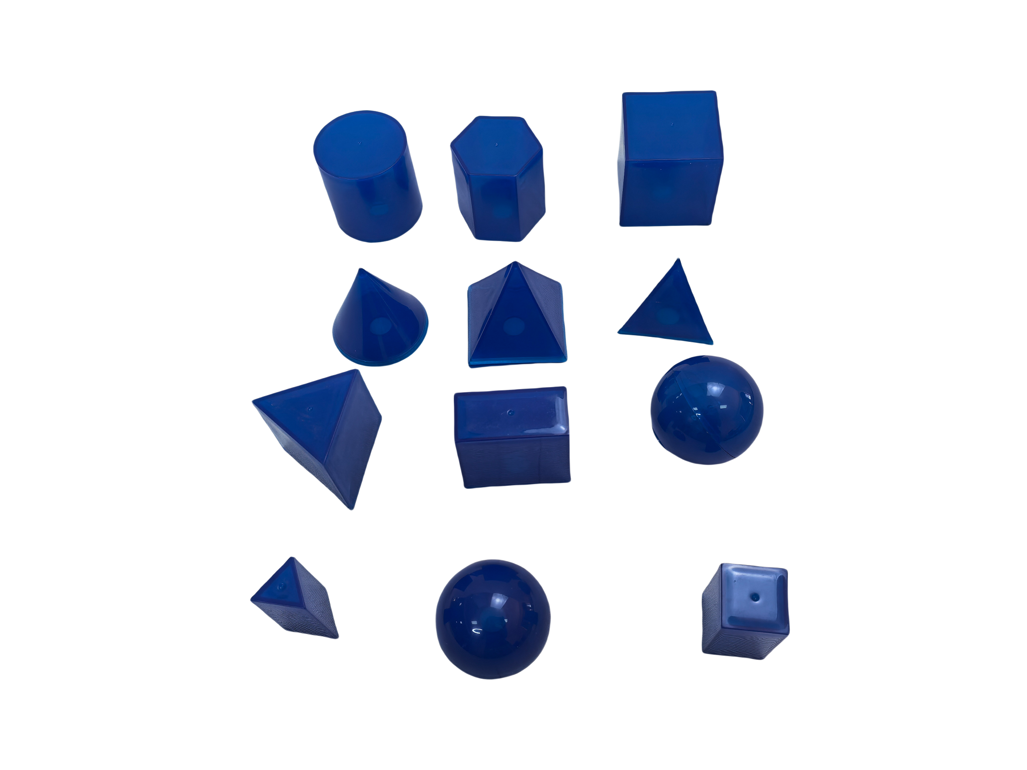 Набор включает в себя 12 моделей, таких как цилиндр, куб, прямоугольная призма, конус и т. Д.