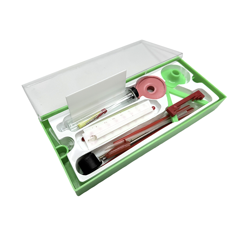 Комплект включает в себя пробирки разных размеров с пластиковыми основаниями, резиновые запоры пробирки, жидкие термометры, алюминиевые стержни, латунные стержни, пластиковые стержни и т. Д.