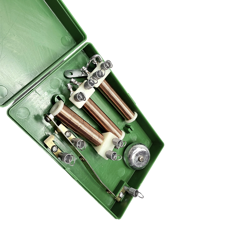 Изделие состоит из катушки электромагнита, соленоида, электрического звонка, пластиковой коробки и т.д.