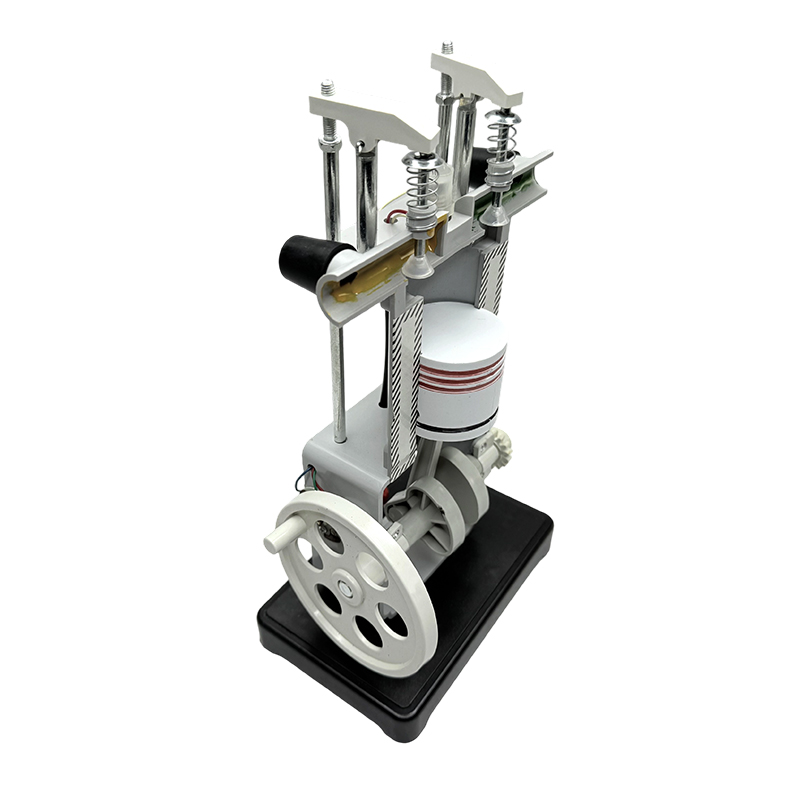Эта модель используется в классах физики средней школы. Его цель состоит в том, чтобы продемонстрировать принцип проектирования и работы четырехтактного карбюраторного двигателя внутреннего сгорания. Это иллюстрирует практическое применение первого закона термодинамики.