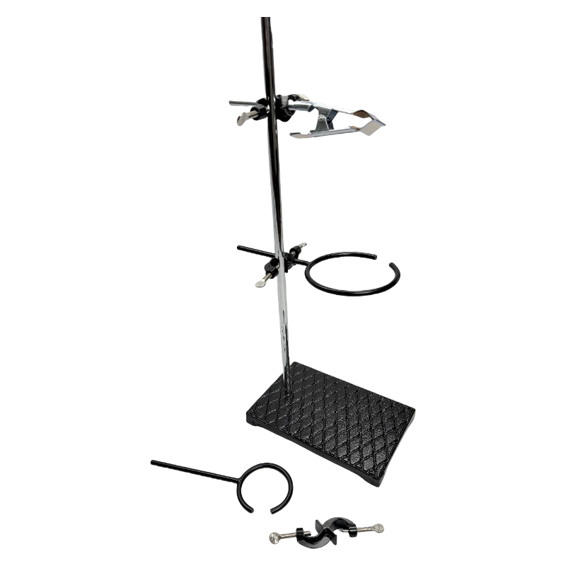 Квадратное основание, параллельный зажим, вертикальный зажим, большое железное кольцо, небольшое железное кольцо, зажим для стакана, вертикальный полюс и т. Д.