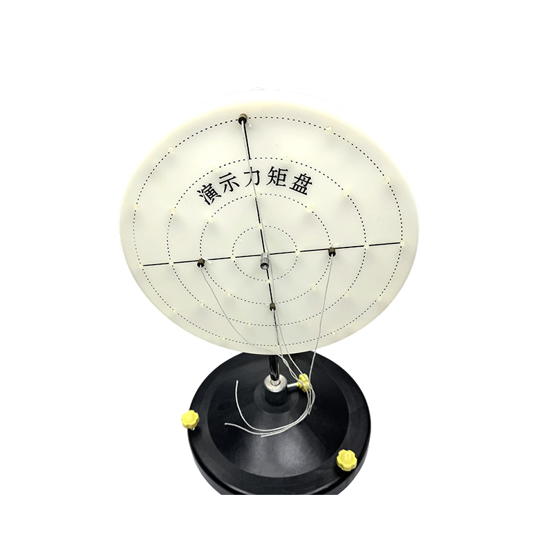 Диск крутящего момента используется для демонстрации учителями физики средней школы и групповыми экспериментами учащихся. Его можно использовать с квадратными кронштейнами и крючками для изучения равновесных условий объектов с фиксированными вращающимися валами.